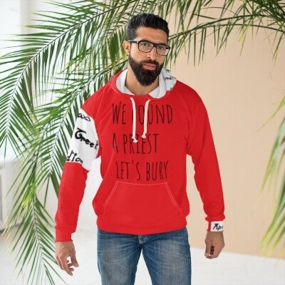 Unisex Pullover Hoodie (AOP) We found a priest ( code Y000-098 )