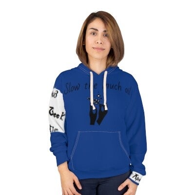 Unisex Pullover Hoodie (AOP) Slow the much oil ( code 000-099 )