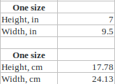 .: One size: 7" x 9.5" (17.7cm x 24.13cm)